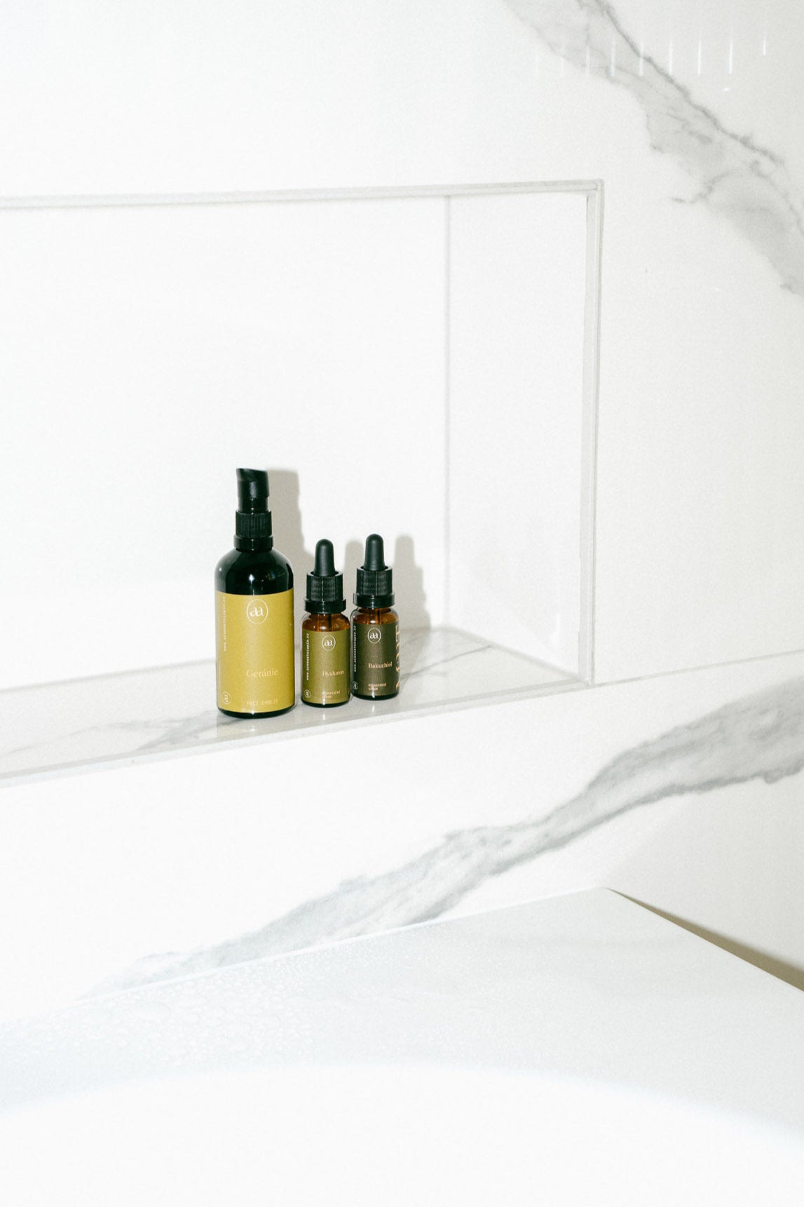 Každému kroku jsme přiřadili vlastní odstín zelené barvy – od nejsvětlejší, kterou péče začíná, po nejtmavší, která ji uzavírá. Stačí tak jediný pohled a hned víte, po čem sáhnout, bez složitého pročítání etiket.